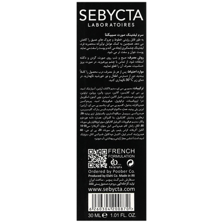 سرم لیفتینگ صورت سبیکتا باعث رفع چروک های سطحی و عمق پوست می شود. این کرم سفت کننده قوی پوست با اثر لیفت قابل رویت می باشد. سرم لیفتینگ صورت سبیکتا (Sebycta Skin Lift Serum) باعث رفع چروک های سطحی و عمق پوست می شود. این کرم سفت کننده قوی پوست با اثر لیفت قابل رویت می باشد.